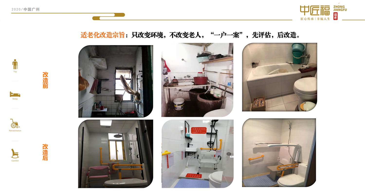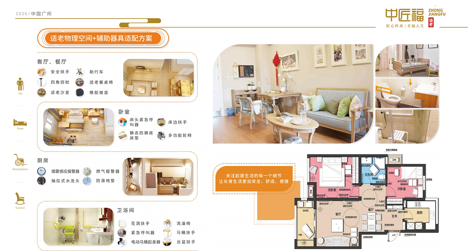 家承載著老年人的回憶和(hé)餘生的光陰,然而不知(zhī)從何(hé)時起,曾經被老年人(rén)中(zhōng)意的棱角分明的家具,會輕易磕(kē)到他的腳(jiǎo)趾、膝蓋,還有佝僂的腰肢;不知(zhī)從何時起(qǐ),沐浴(yù)間光滑如鏡的地麵,會讓他走的戰戰兢兢;不知何時(shí)起,上衛生間並不太久的他(tā),需要在家人(rén)的幫助下才能站起。生活中的種(zhǒng)種不便似乎在告訴他,想在家(jiā)中安心養老需(xū)要改變(biàn)自己熟悉的家,居家適老化是居家養老的重要基礎和(hé)前提。