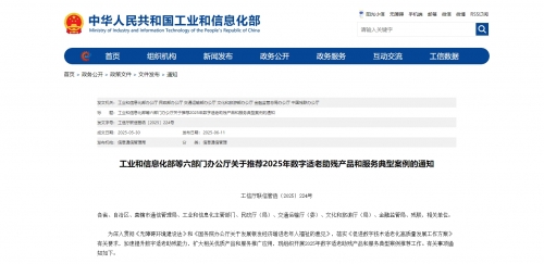 • 六部門聯手推薦2025年數字(zì)適老助殘產品和服務典型